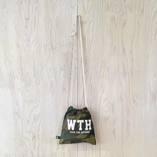 ハリのあるRIP-STOP生地で作った巾着ポシェットです。とても軽い生地ですが強度はあります。紐の取り付けを輪にしているので物の出し入れがしやすいです。